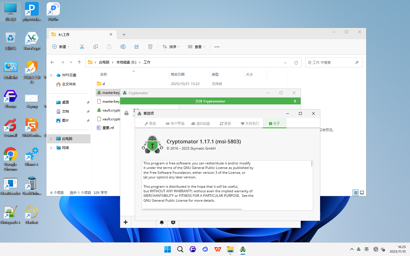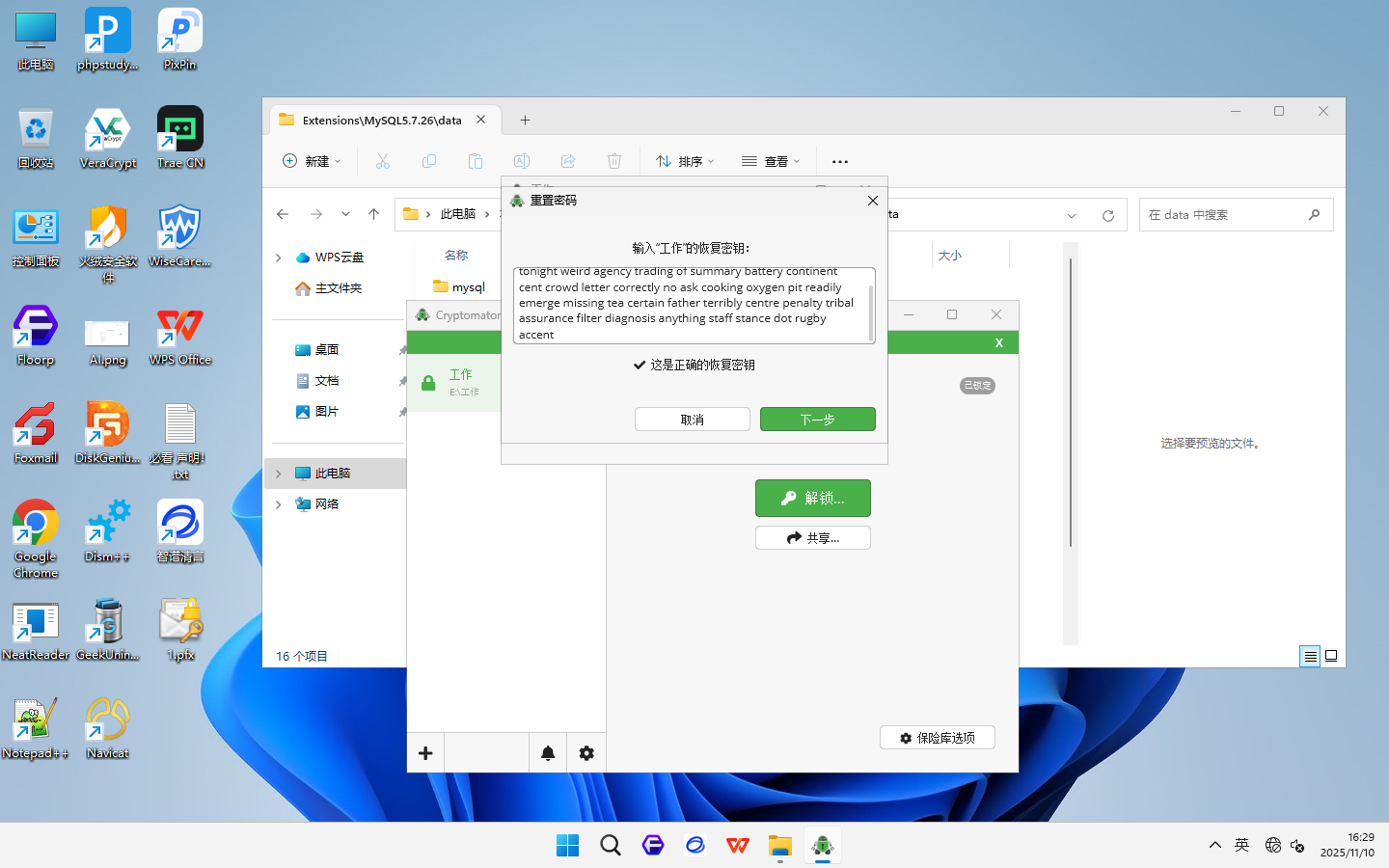 用恢复密钥重置密码解开E盘中Cryptomator加密数据