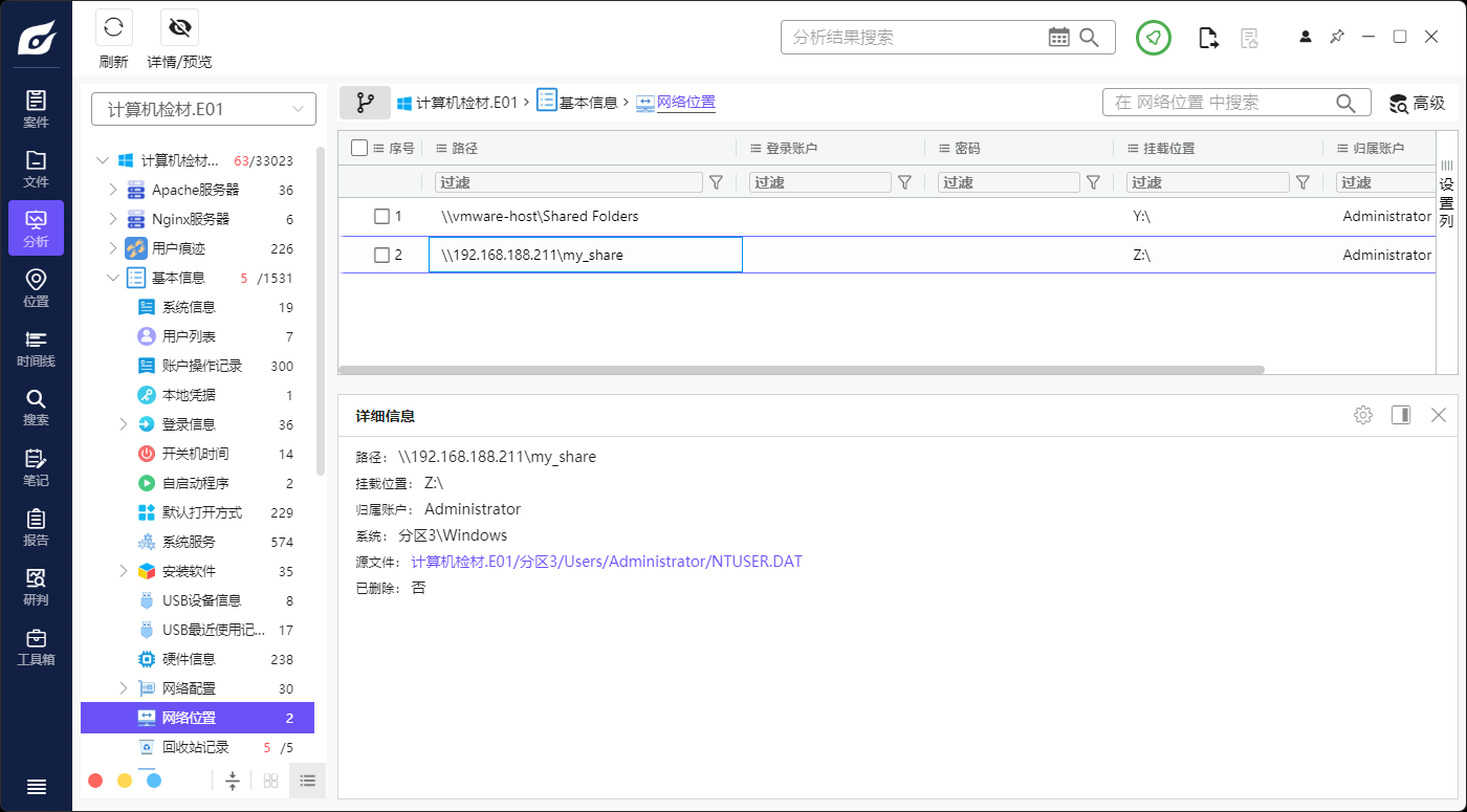 分析Windows检材,嫌疑人NAS映射的盘符是什么?[标准格式:C]