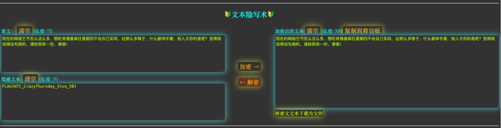 这段文本在记事本中看不到任何端倪,但你将它完全复制使用零宽字符隐写解密后,你会得到新的文本。