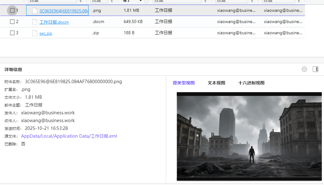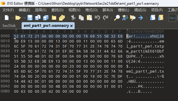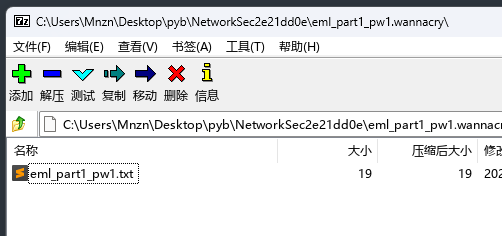 里面有一个eml_part1_pw1.wannacry 文件,这个wannacry 纯属捣乱 我一开始还以为是那个勒索病毒