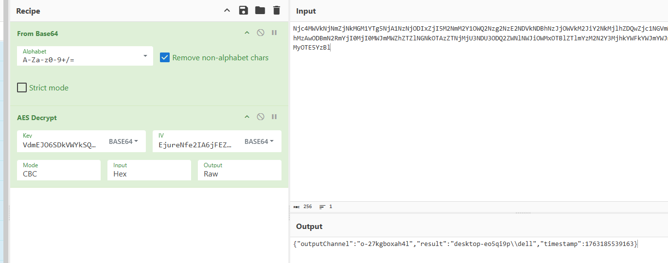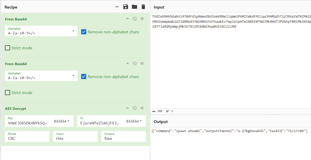 解密出一条 {“command”:“screenshot”,“outputChannel”:“o-ynfqv9m6nx8”,“taskId”:“ec409ca6”} 截图命令