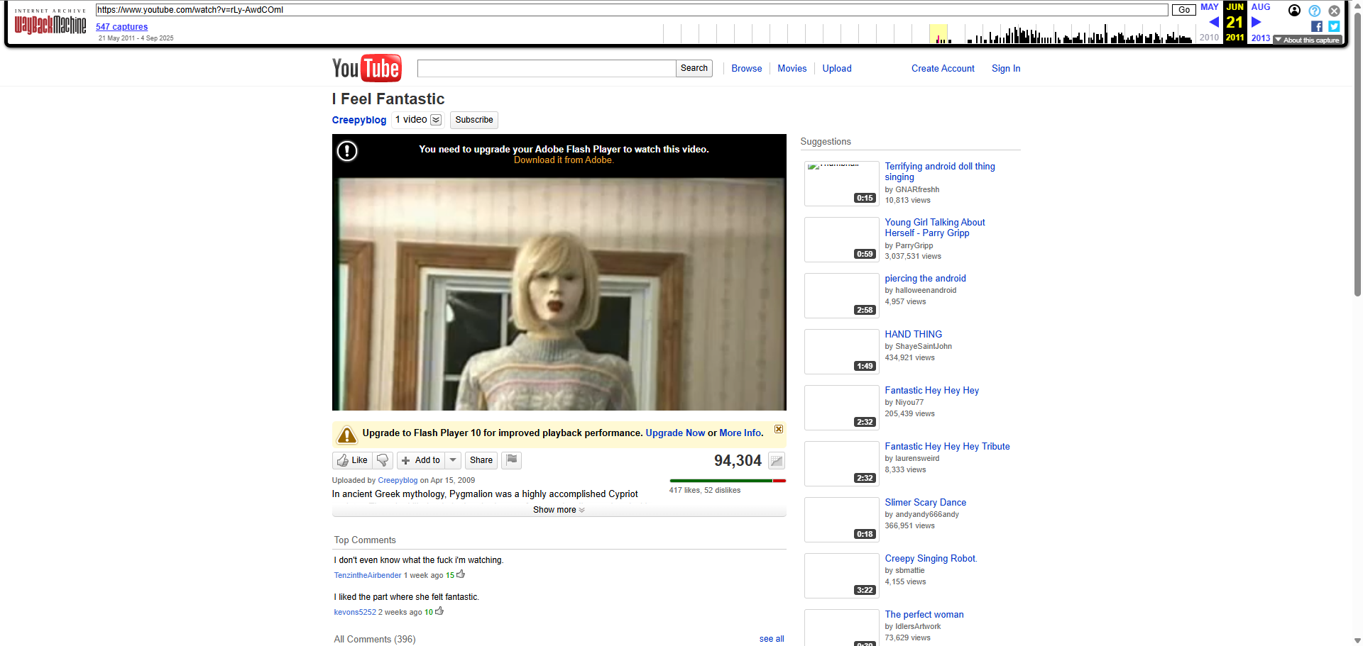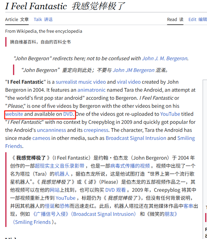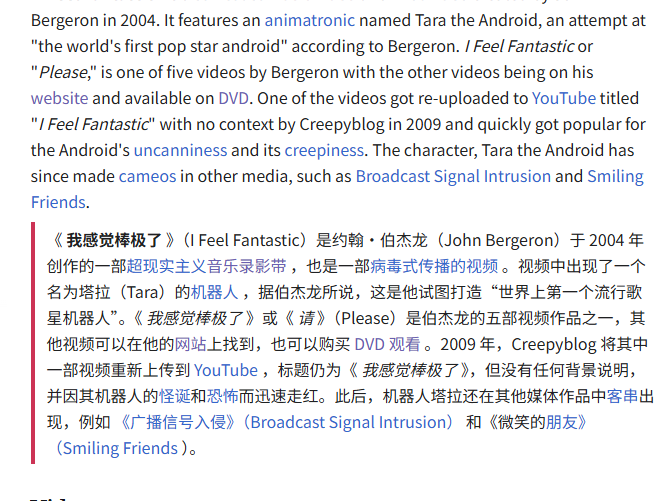 继续搜索 找到https://creepy-videos.fandom.com/wiki/I_Feel_Fantastic 里面的链接是https://www.youtube.com/watch?v=rLy-AwdCOmI