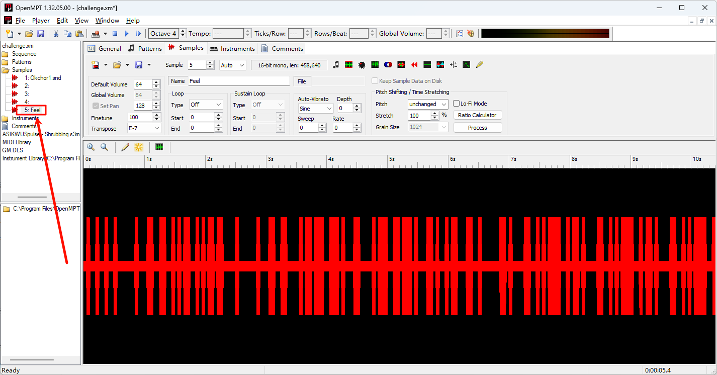 发现sample5叫Feel 且波形很特殊 提取出来