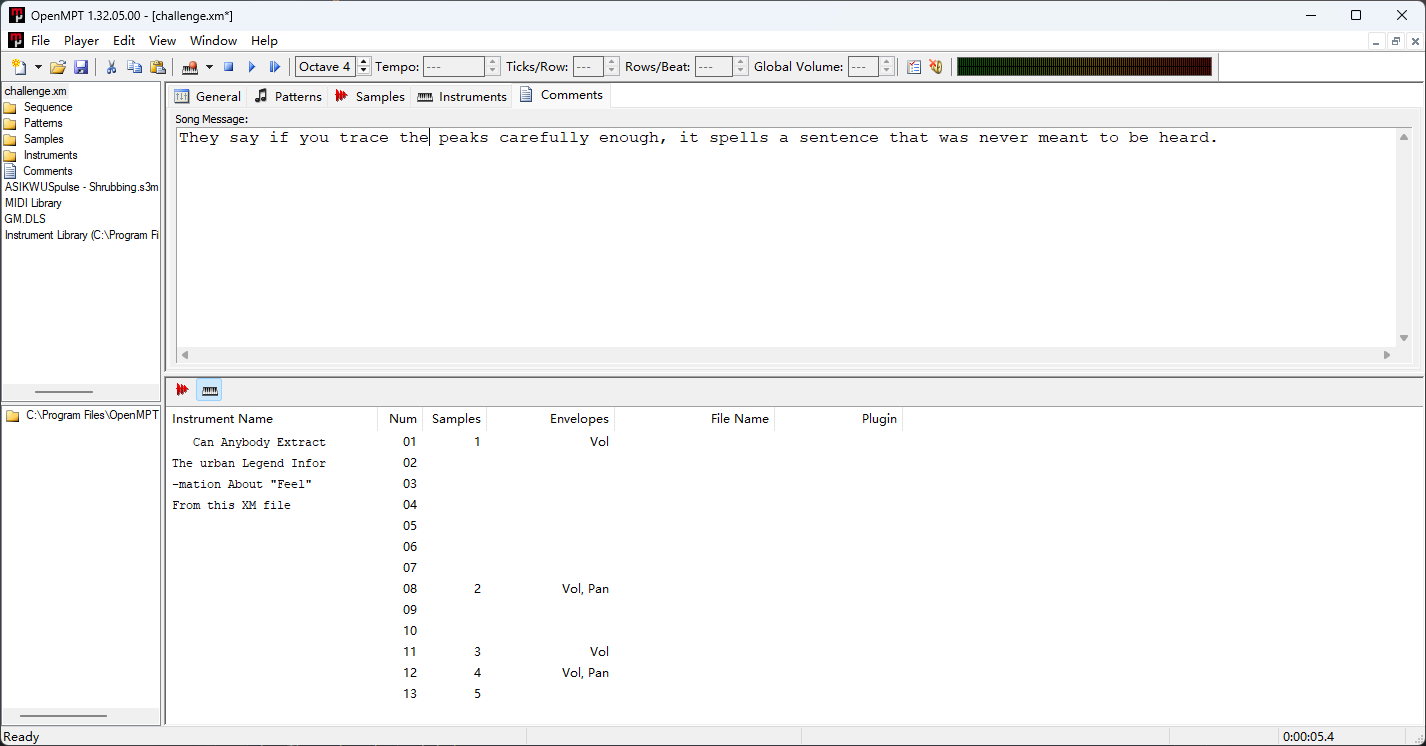 She wants to tell you something, encoded in melodies. Within the digital symphony, her true voice emerges. What is the hidden message found in the XM file? The words she longed to sing, the feeling she wanted to share.