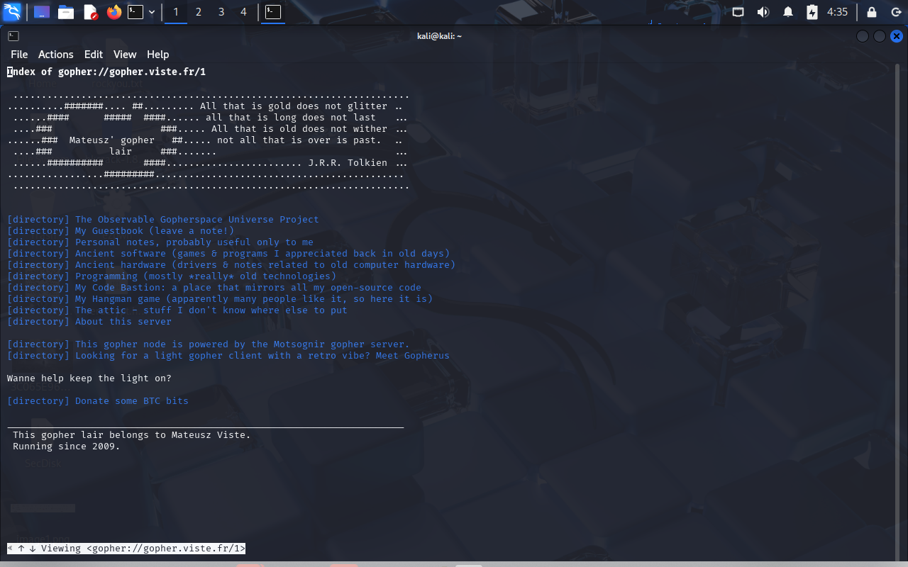 作者维护了一个 Gopherspace 节点 对应题目中的 maintained his corner