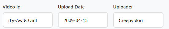 She just feels love, and her legend once spread across YouTube. Her song touched hearts, but the original video on the YouTube platform has been removed — deleted, re-uploaded, distorted, like memories fading with time. Through the fragments of public records, find where her voice first echoed: the original video ID, upload date (YYYY-MM-DD), and the one who first shared her song.