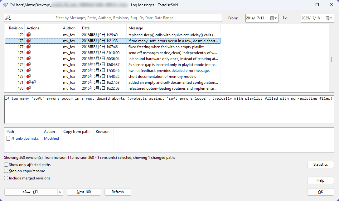 The developer behind it has quietly maintained his corner of the net for many years. Please help me locate the version entry in the author’s own code history where he introduced a safeguard to prevent endless “soft error” loops caused by missing playlist items.